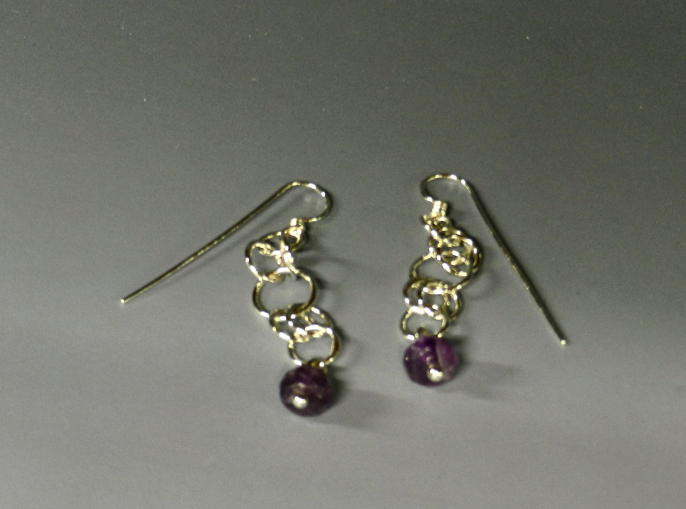 Faceted Amethyst Stones on Sterling Silver Chain Earrings
