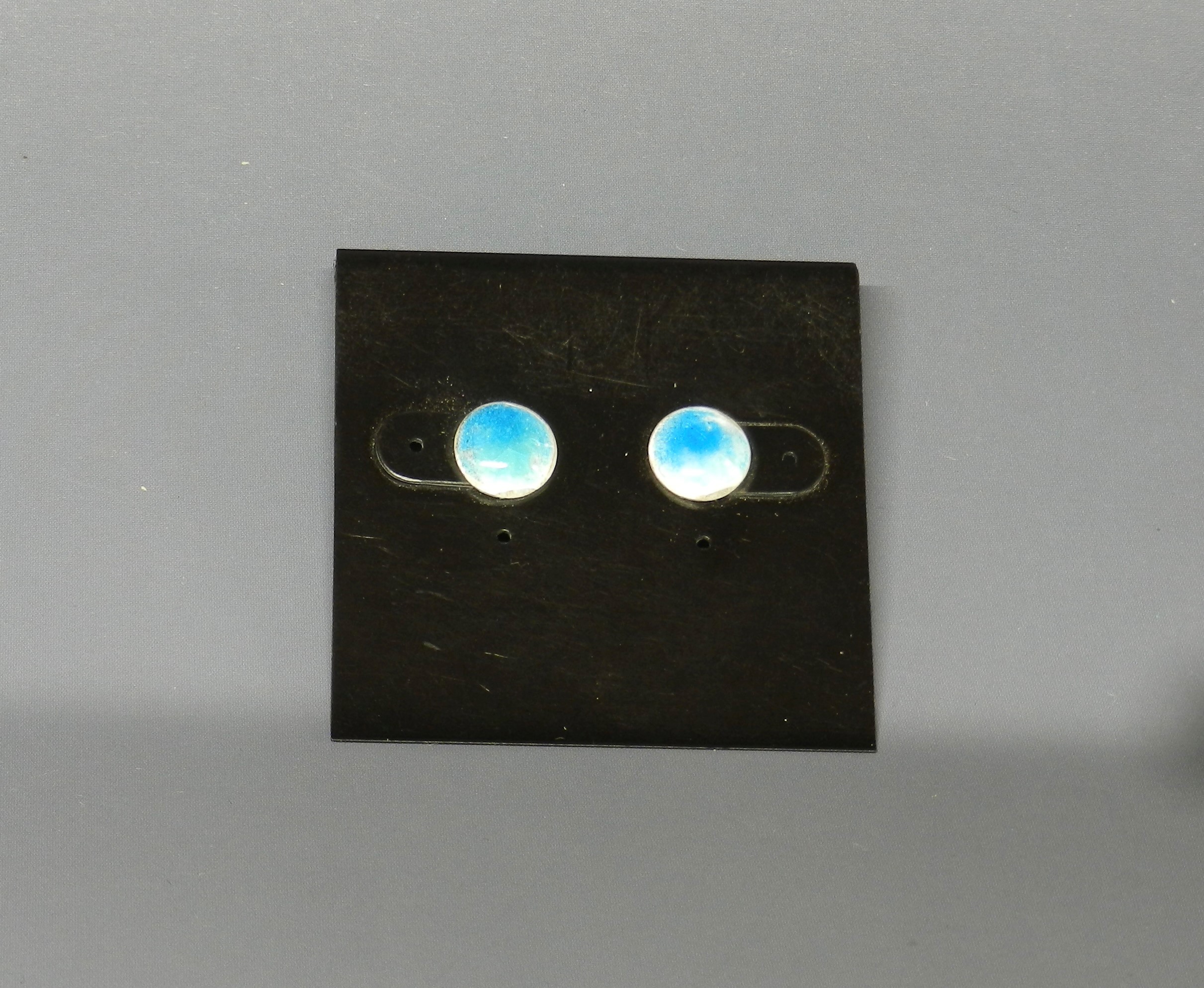 Little round blue post earrings of fine silver on Sterling posts. (Imperfect enamel cover)