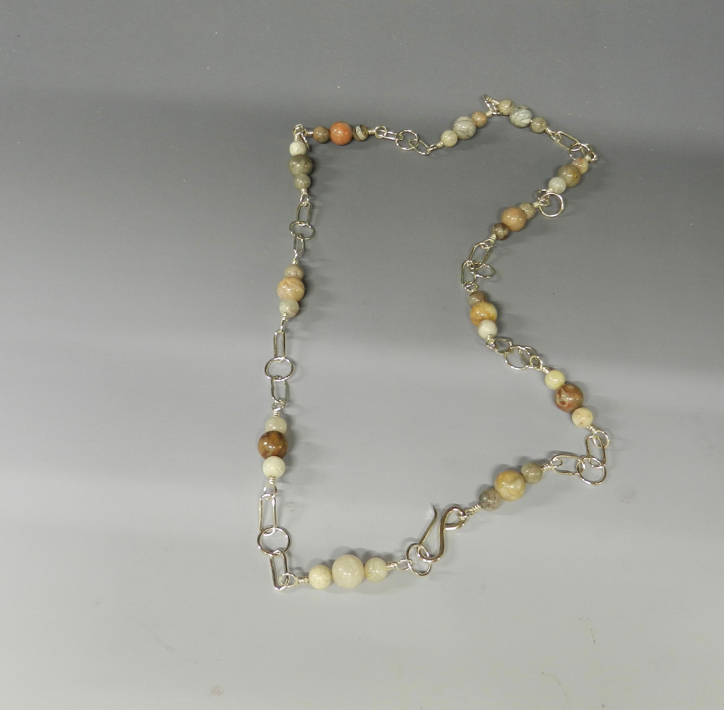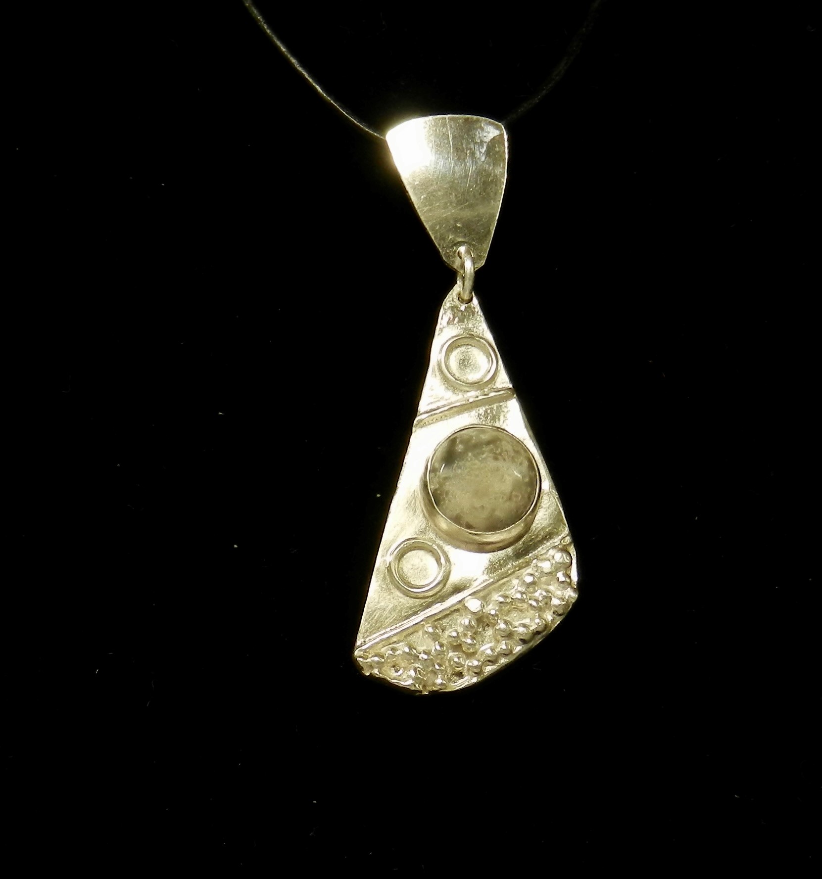 Small Free-form pendant done in Sterling Silver with crazy lace agate cabochon