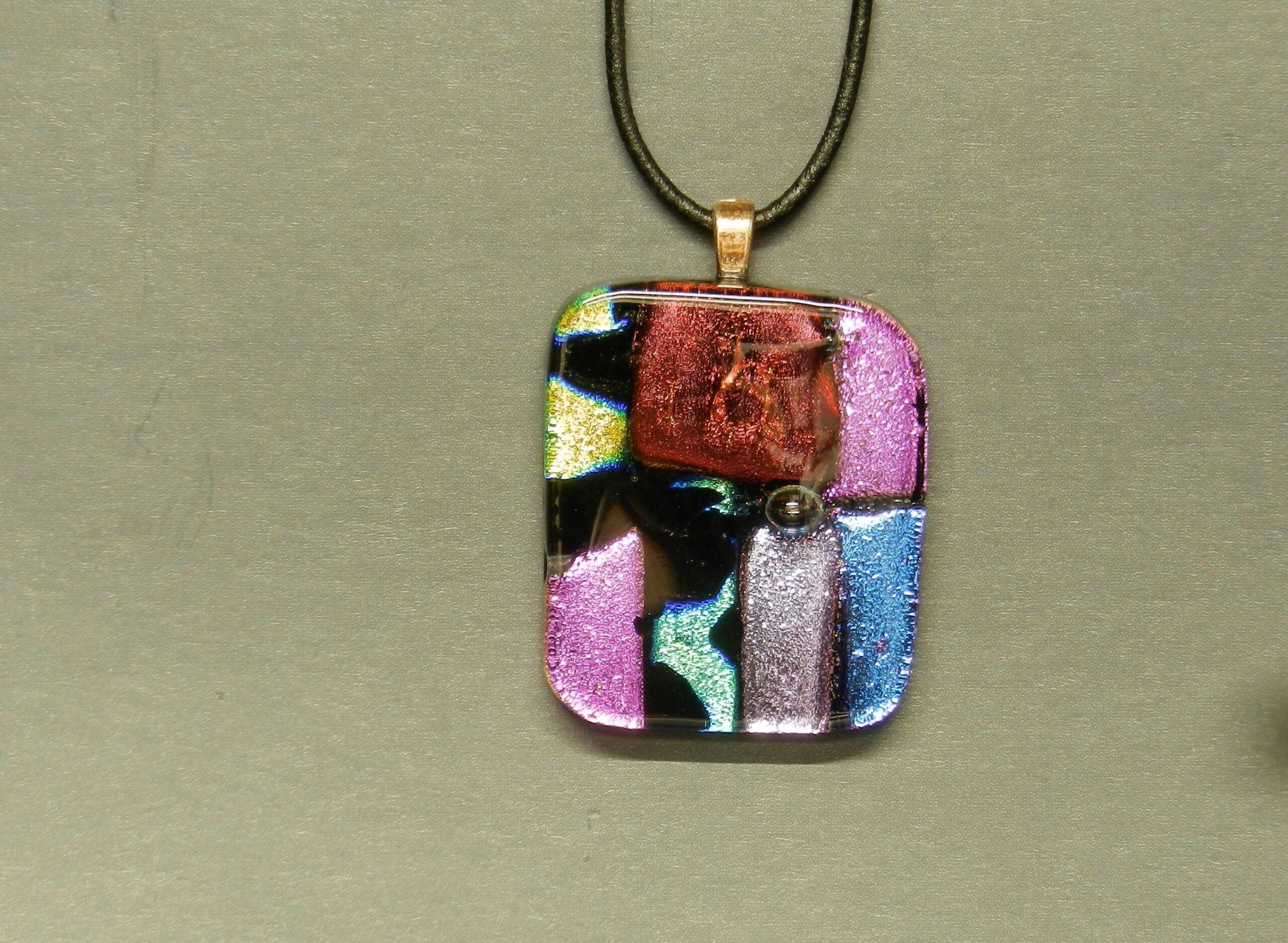 Squarish Dichroic Pendant in purples, blues, silvers, green and gold