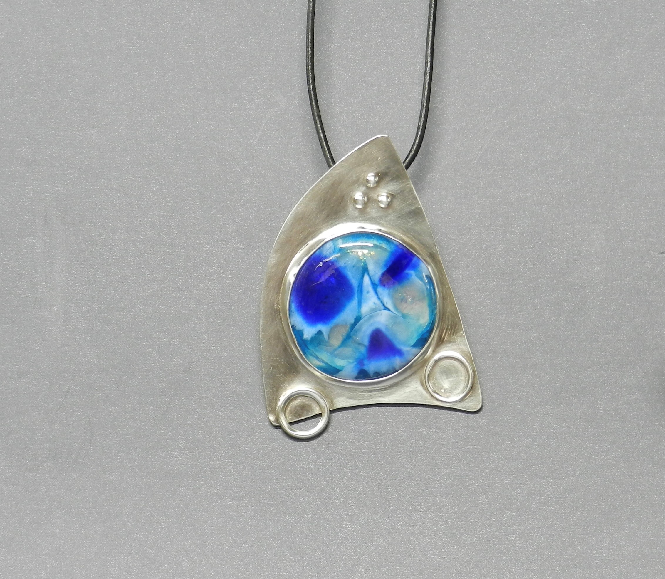 Sterling Pendant with Cabochon of Various Blue Enamels