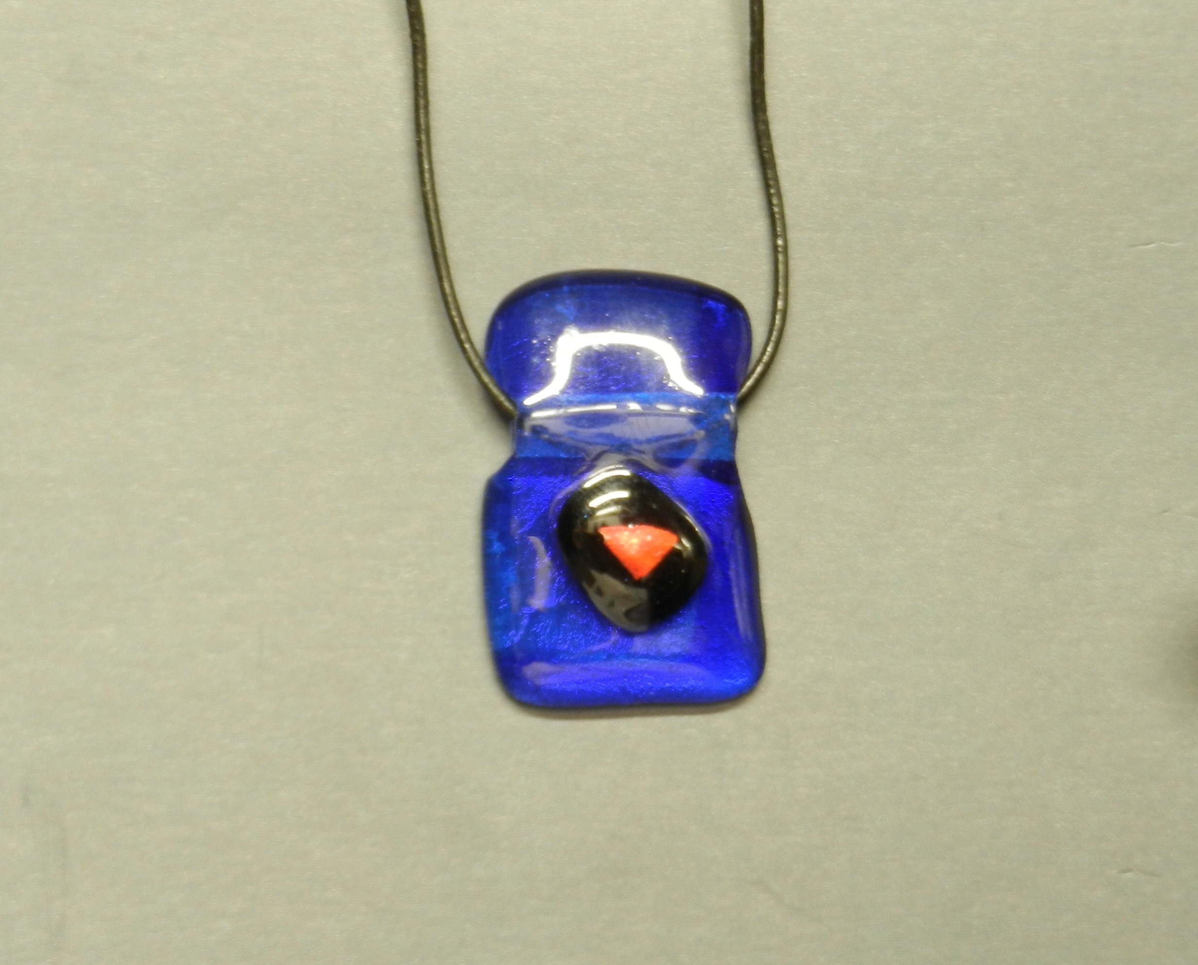 Transparent Blue Dichroic Glass pendant with orange/red triangle