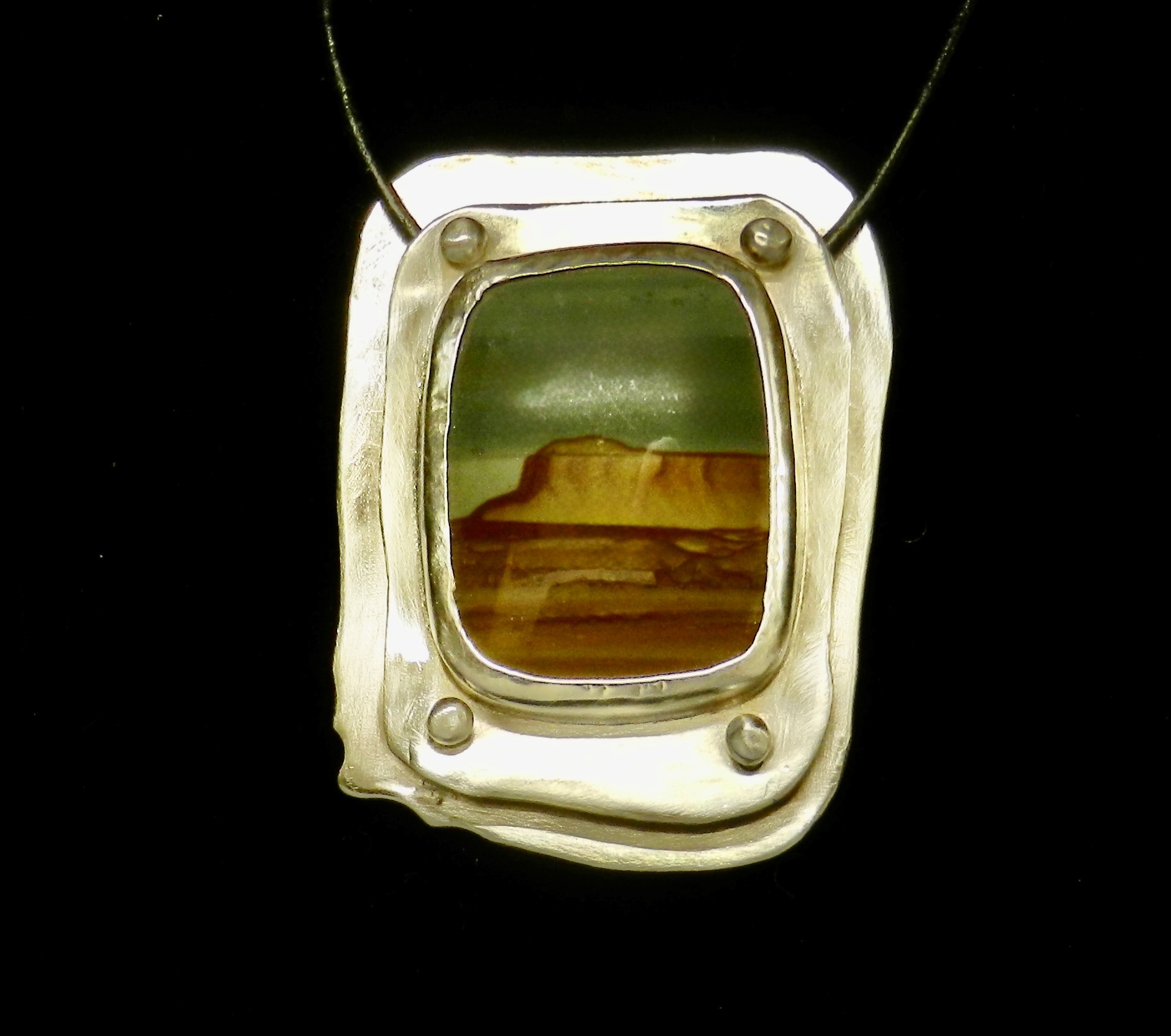 Picture Jasper in Fine Silver on double backplate of Sterling Silver
