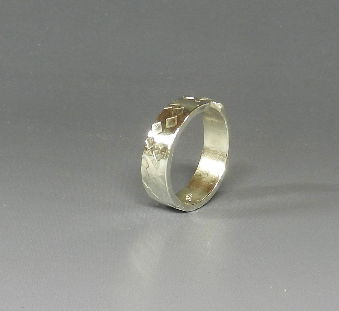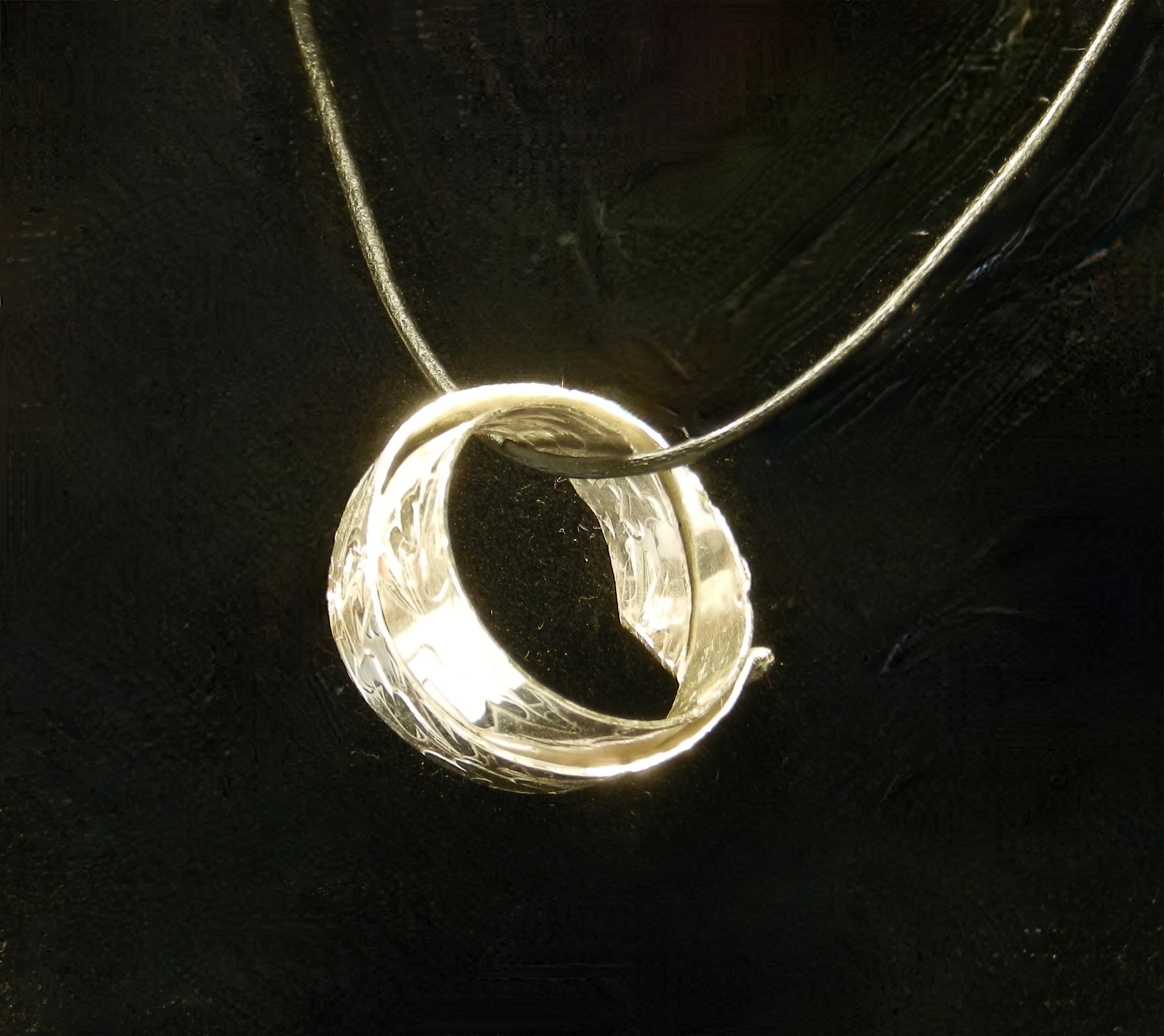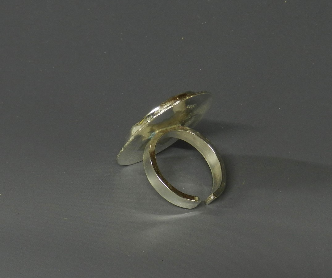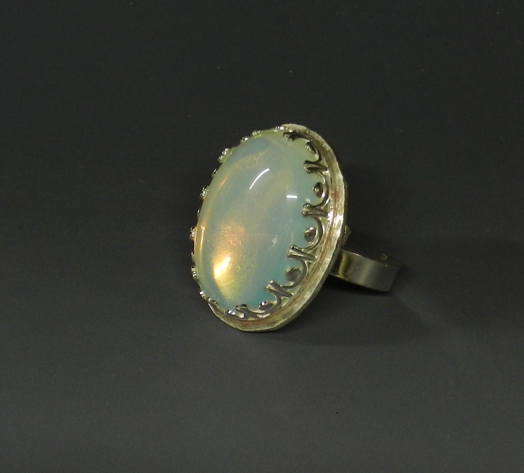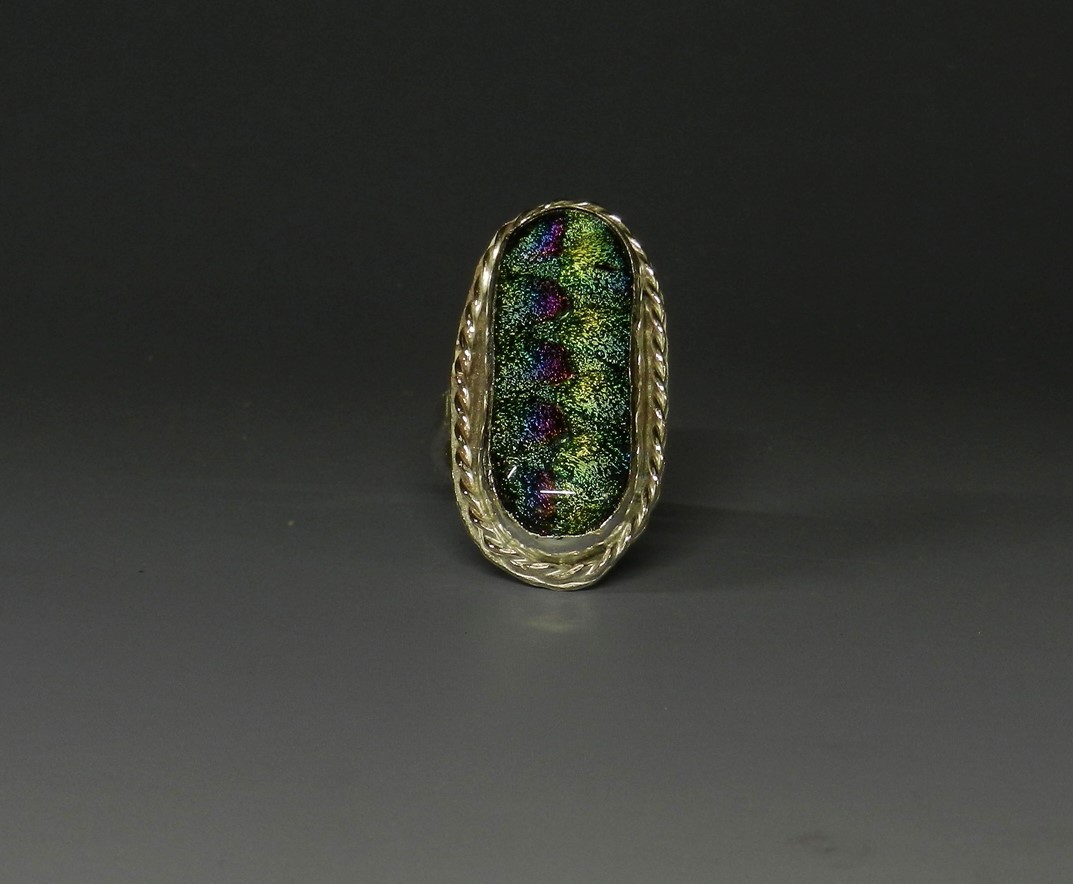 Dichroic Cabochon in Fine Silver Bezel on Sterling Silver Open Shank Ring