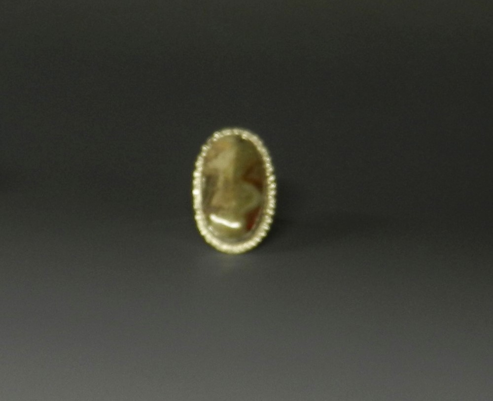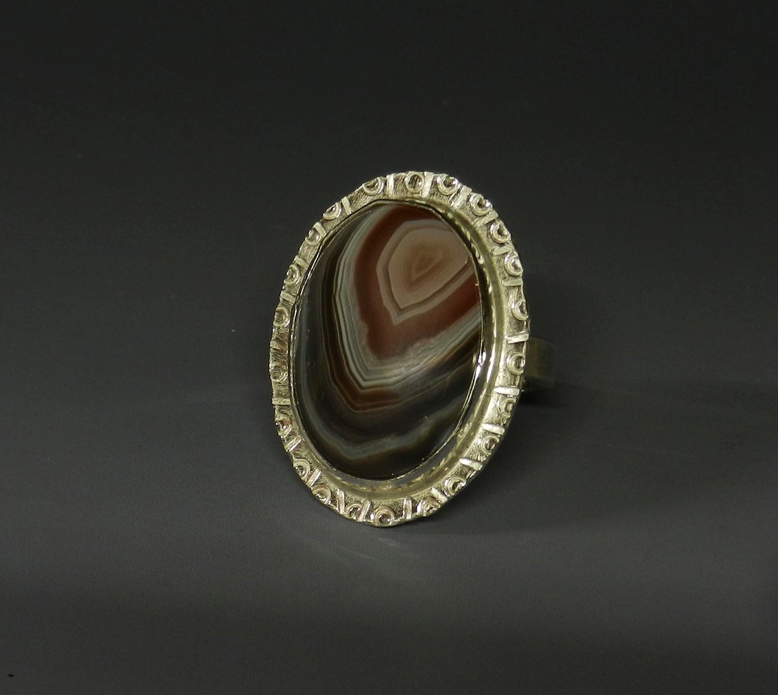 Black Lace Agate Ring in Fine Silver on Fancy Sterling Back Plate and Fancy Three Strand Sterling Shank