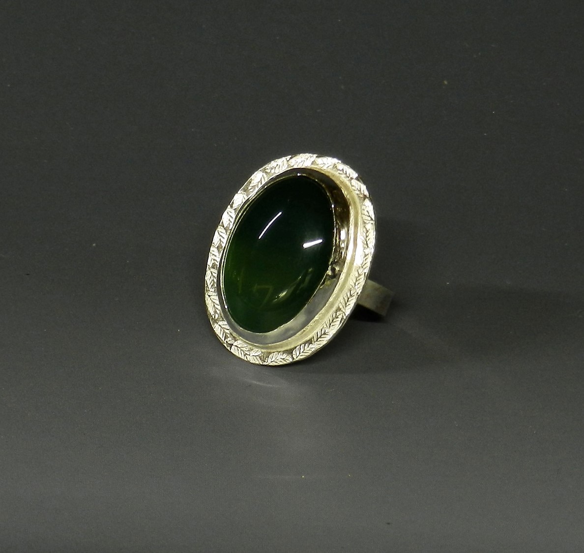 Green Agate in Fine Silver Bezel on Sterling Silver Open Shank Ring