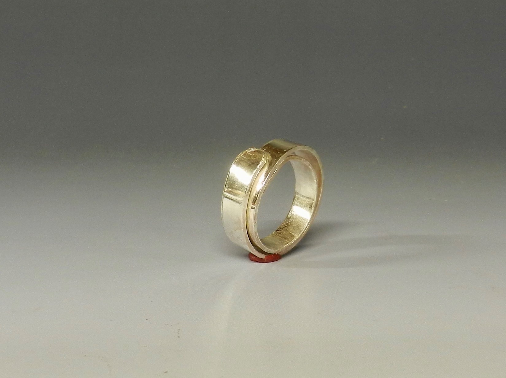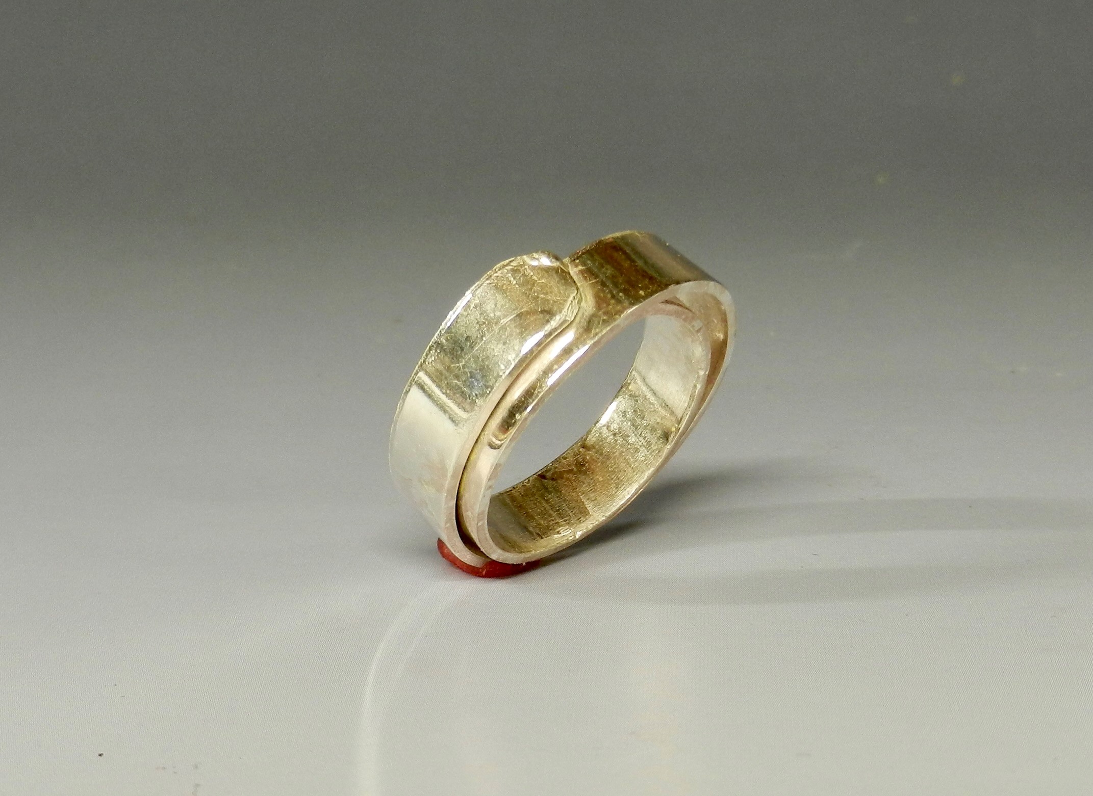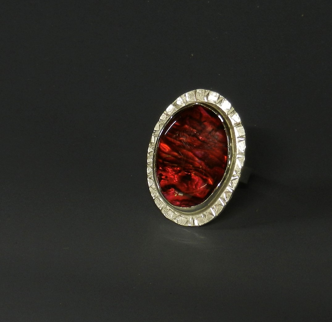 Medium-large Red Paua in Fine Silver on Sterling Silver Open Shank Ring