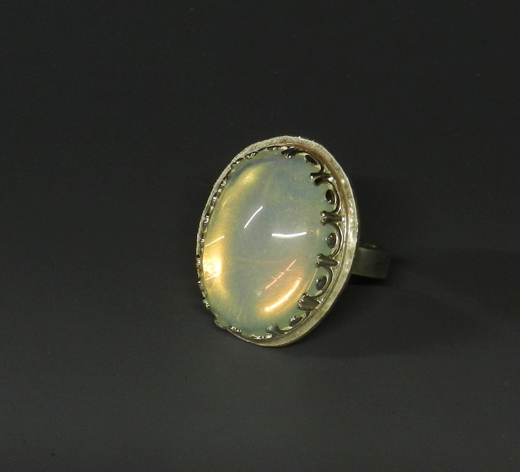 Large Chalcedony Cabochon in Fine Silver Bezel on Sterling Silver Open Shank Ring