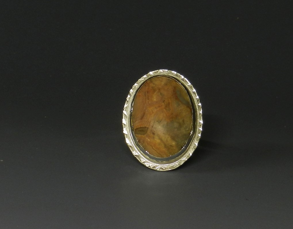 Botswana Agate in Fine Silver Bezel on Sterling Silver Open Shank Ring